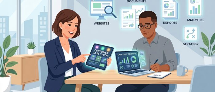 まず、掲載される場所は主に「自社のホームページ(サービスサイト)の事例コーナー」や、「営業担当が商談で配る提案資料の中」です。
