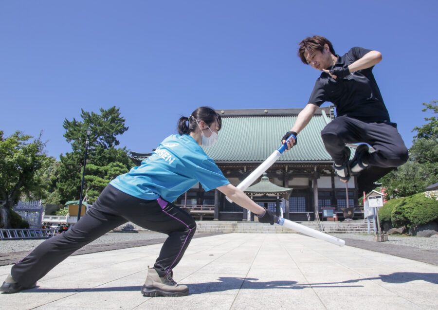 『SASSEN』とは、福岡県北九州市で生まれた、チャンバラとフェンシングを足したようなスポーツです。発泡ポリエチレンでできている「SASSEN刀」が対戦相手の体に当たると、専用アプリとBluetoothが連動して、自動で当たり判定が出るようになっています。子供から大人まで、合法的に人をたたけて怪我もしない、楽しいスポーツです(笑)